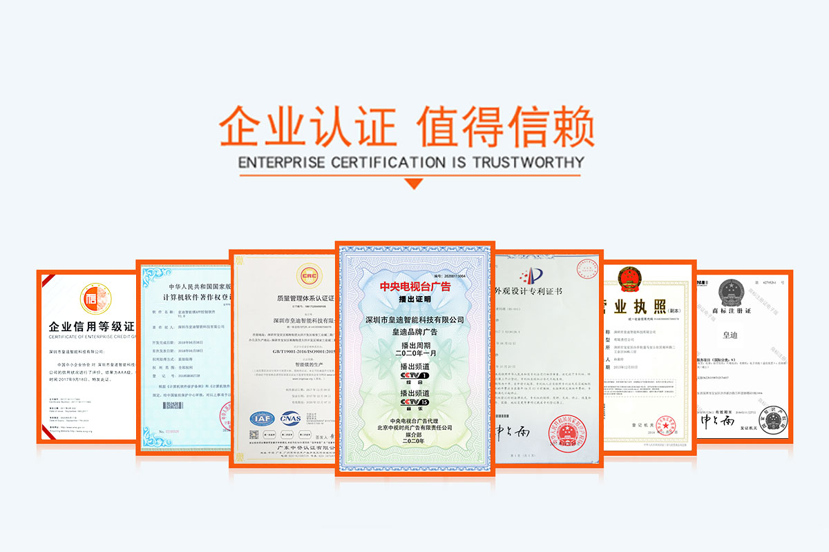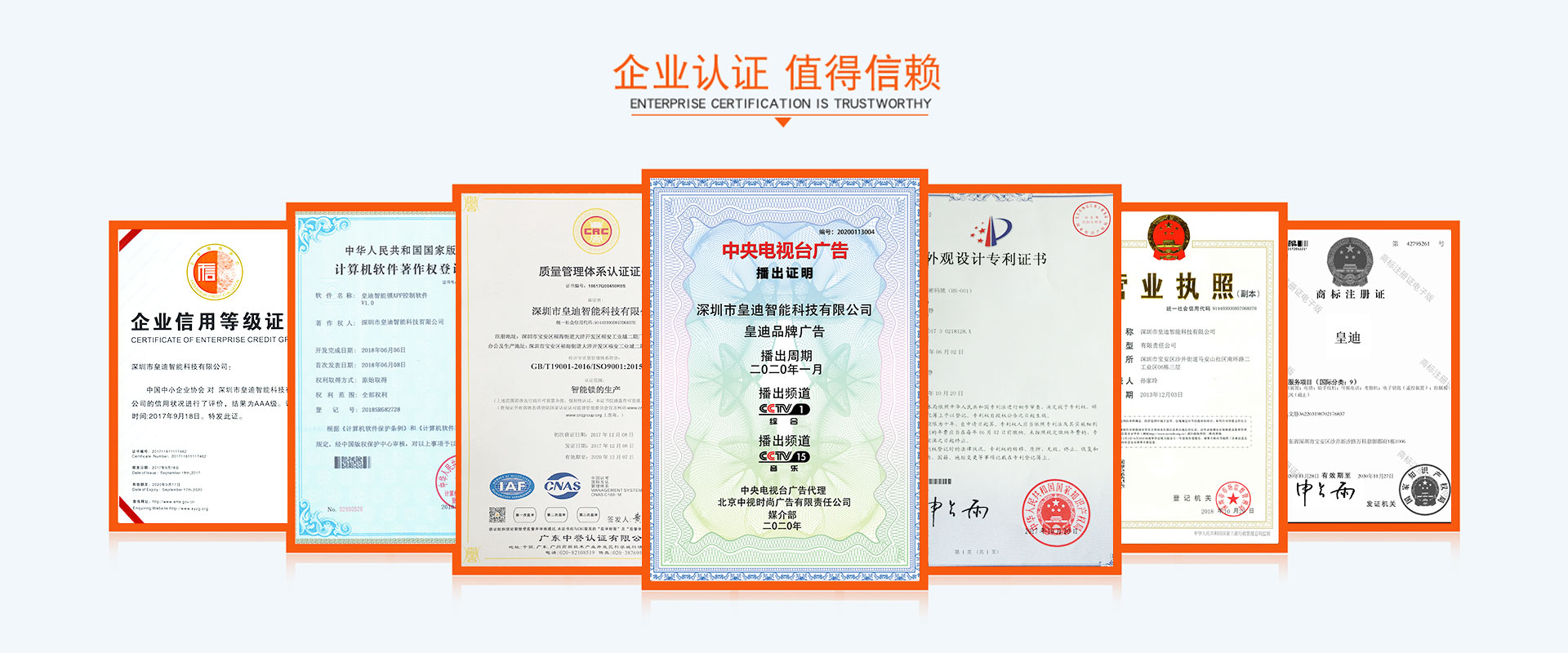 深圳市皇迪智能科技有限公司,是一家集產(chǎn)品研發(fā)、制造、銷售、安裝、售后于一體的全產(chǎn)業(yè)鏈公司,我司專注于酒店刷卡鎖、公寓藍(lán)牙密碼鎖、電子鎖、密碼鎖研發(fā),生產(chǎn),銷售.是國家高新技術(shù)企業(yè),公司已通過ISO9001/2015標(biāo)準(zhǔn)認(rèn)證,并擁有多項國家實用新型專利、外觀專利及計算機(jī)軟件著作權(quán); 皇迪玻璃門鎖廠家一直秉承“以顧客為中心,以人為本,長期艱苦奮斗”的經(jīng)營理念,為全球每一位消費(fèi)者提供舒適,便捷,安全的高品質(zhì)生活。